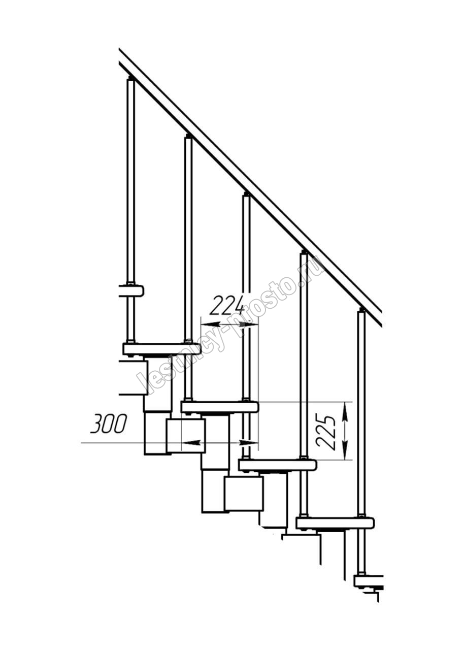 Модульная лестница Фаворит 225 2700-2820, Серый, Лиственница, Нержавеющая сталь