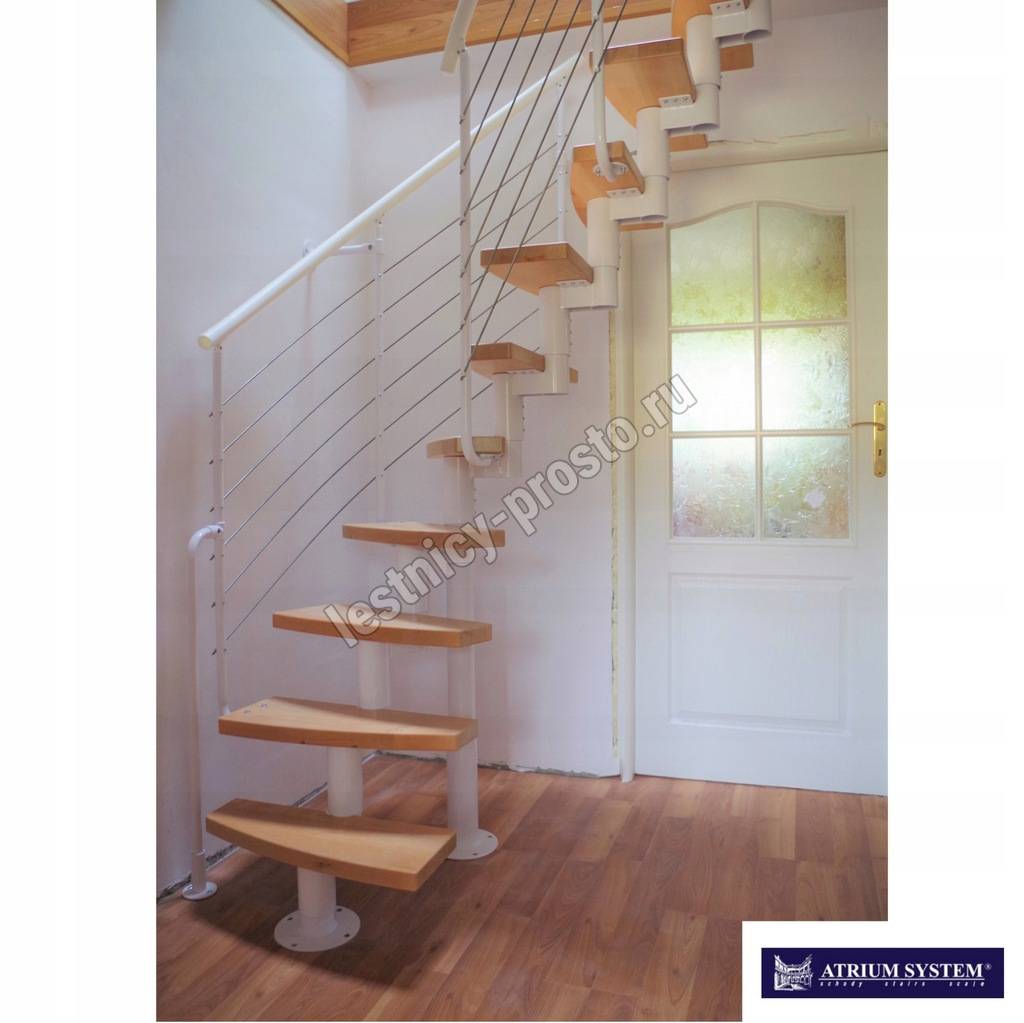 С помощью дополнительных секций(покупаются отдельно) можно увеличить высоту лестницы до 3750 мм. Модульный каркас лестницы позволяет собрать конструкцию, как прямую так и с необходимым небольшим поворотом в нужную сторону, благодаря чему эта модель идеально подходит для помещений с ограниченным пространством, где установка стандартных лестниц невозможна.