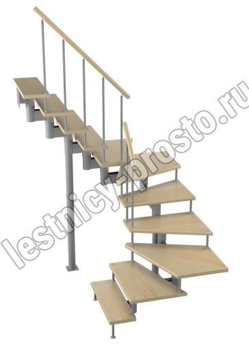 Модульная лестница Спринт 225 2475-2585, Серый, Бук, Нержавеющая сталь