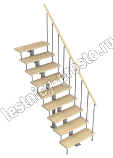 Модульная лестница Стандарт 2025-2115, Серый, Бук, Нержавеющая сталь