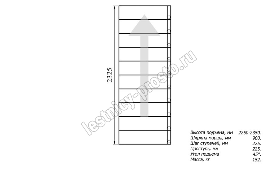 Модульная лестница Стандарт 2250-2350, Черный, Сосна, Нержавеющая сталь