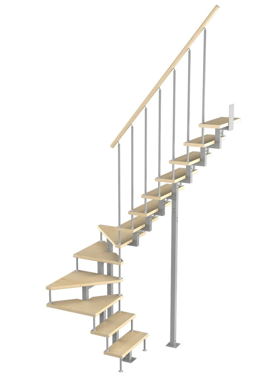 Модульная лестница Стандарт 2250-2350, Серый, Сосна, Крашеная, Без Ступений
