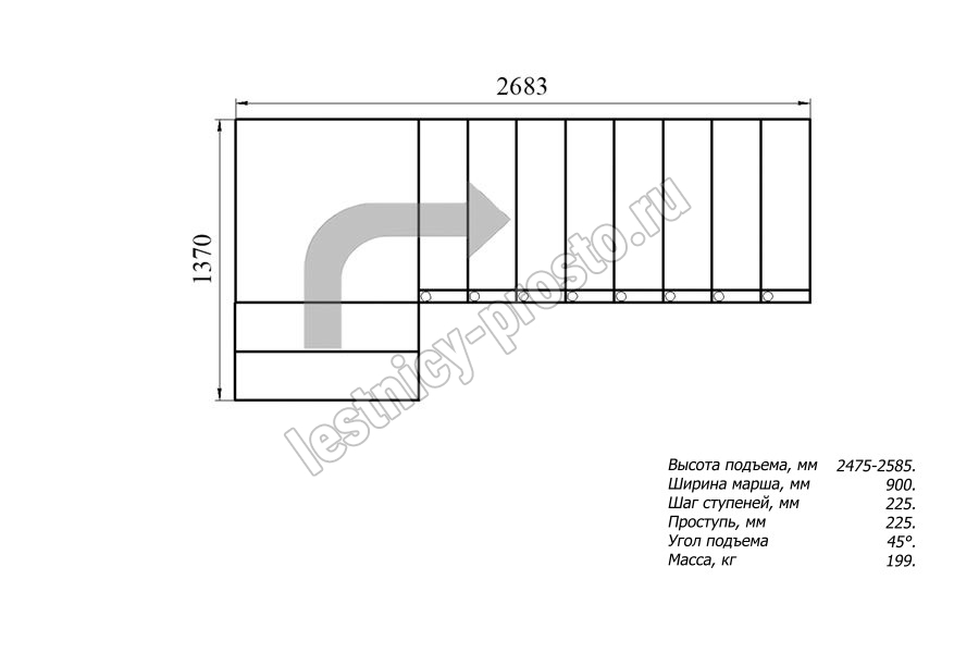 Модульная лестница Статус 225 2475-2585, Черный, Сосна, Нержавеющая сталь
