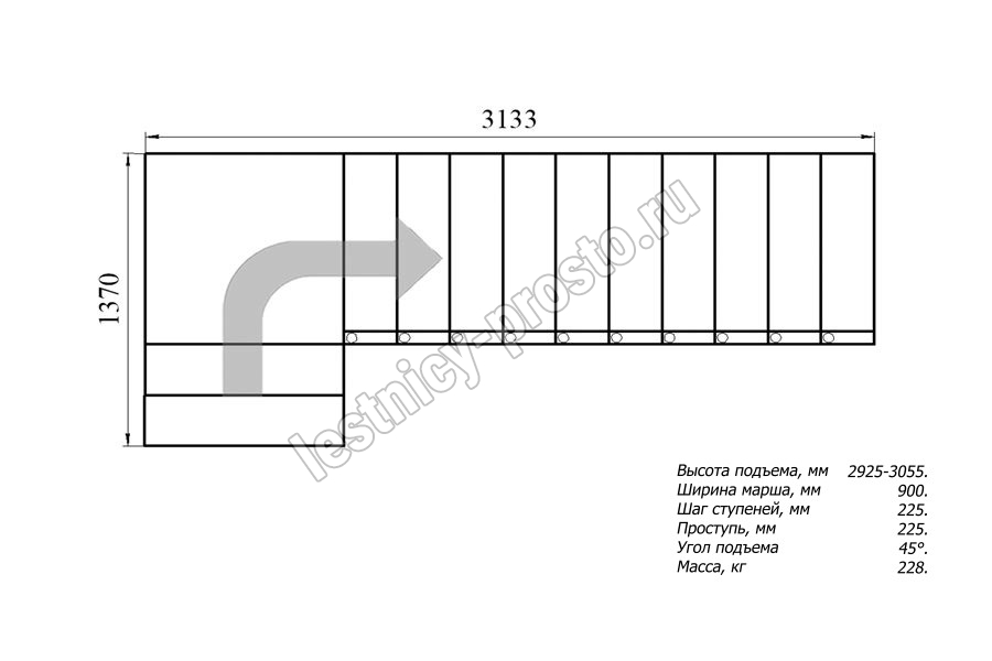 Модульная лестница Статус 225 2925-3055, Серый, Сосна, Нержавеющая сталь