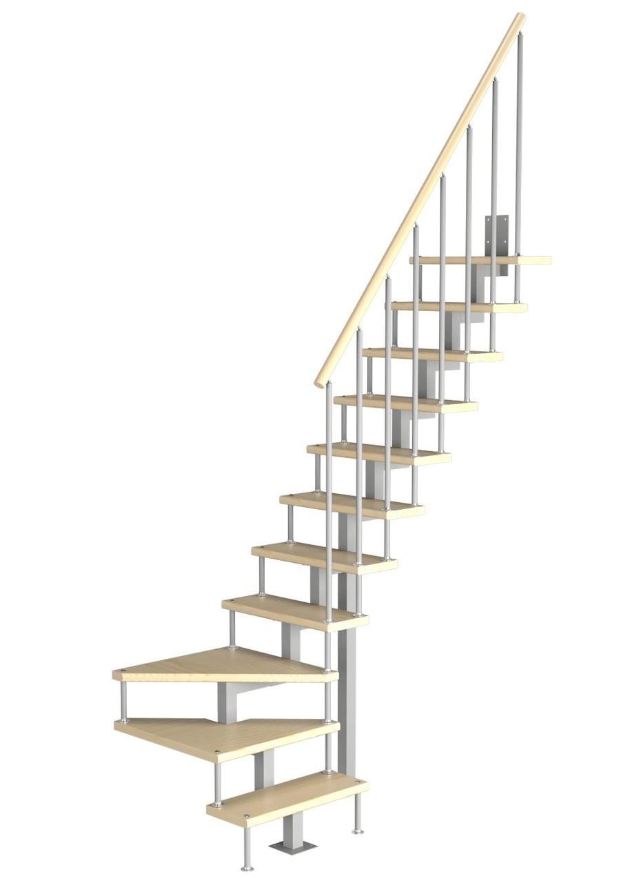 Модульная малогабаритная лестница Эксклюзив 3150-3375, Белый, Сосна, Нержавеющая сталь