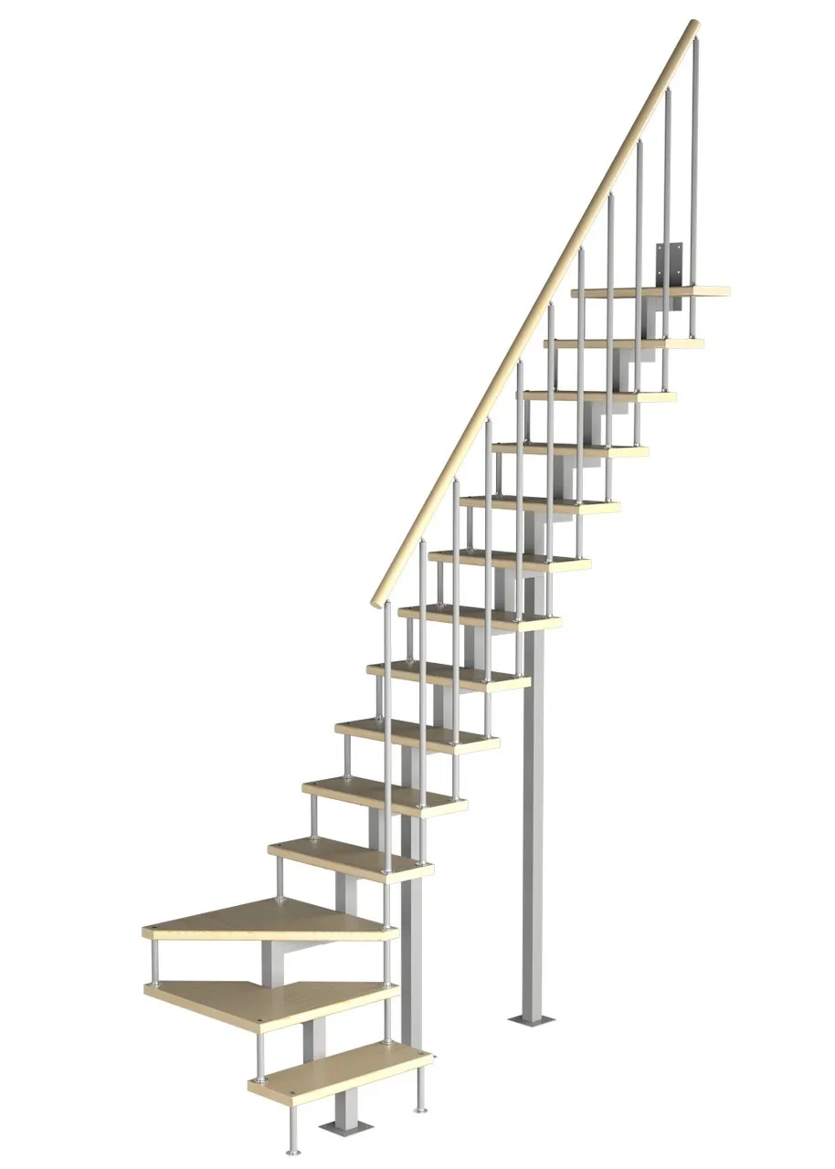 Модульная малогабаритная лестница Компакт 3150-3375, Серый, Бук, Нержавеющая сталь
