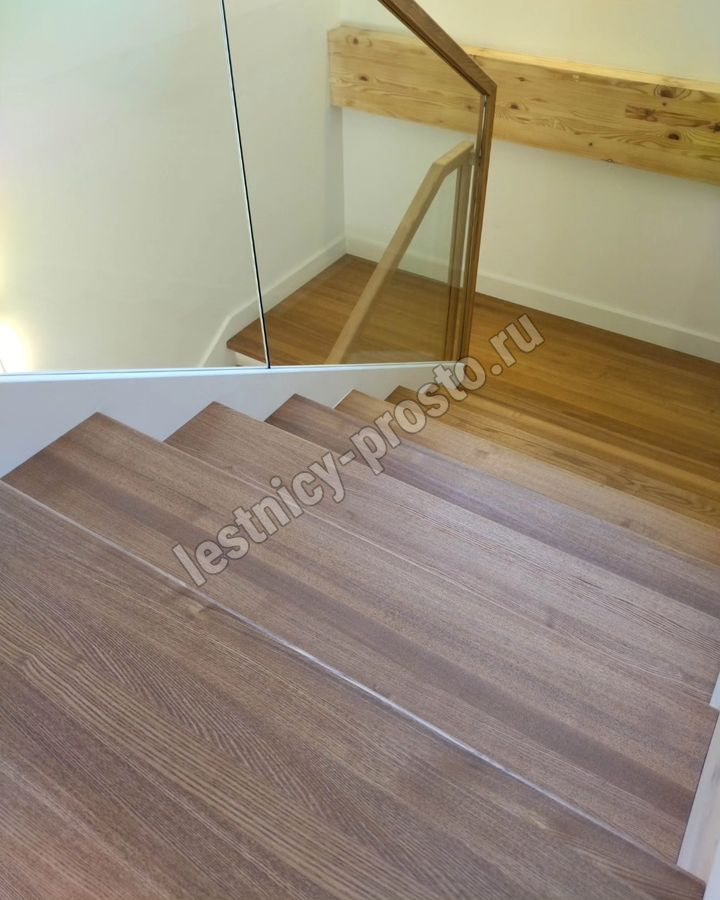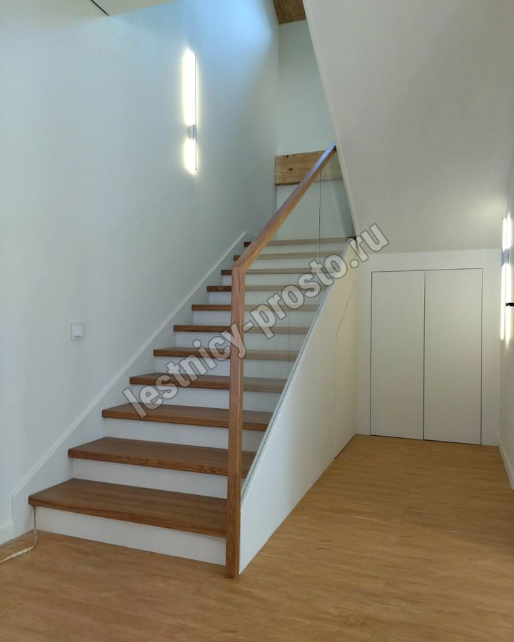 Лестница на второй этаж с ограждением из стекла LP-1-4