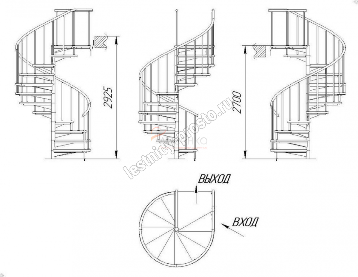 Высота лестницы 2700 - 2925 мм