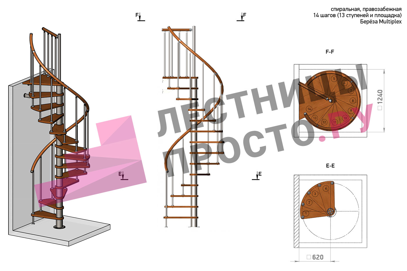 Решение об ориентации поворота лестницы принимается при сборке (комплект собирается и в правозабежную, и в левозабежную лестницу)