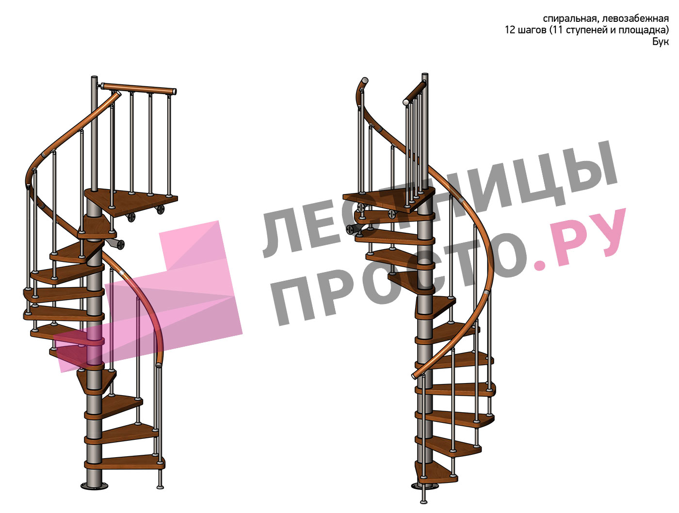 Правая, d=120см, 11 ступеней + площадка