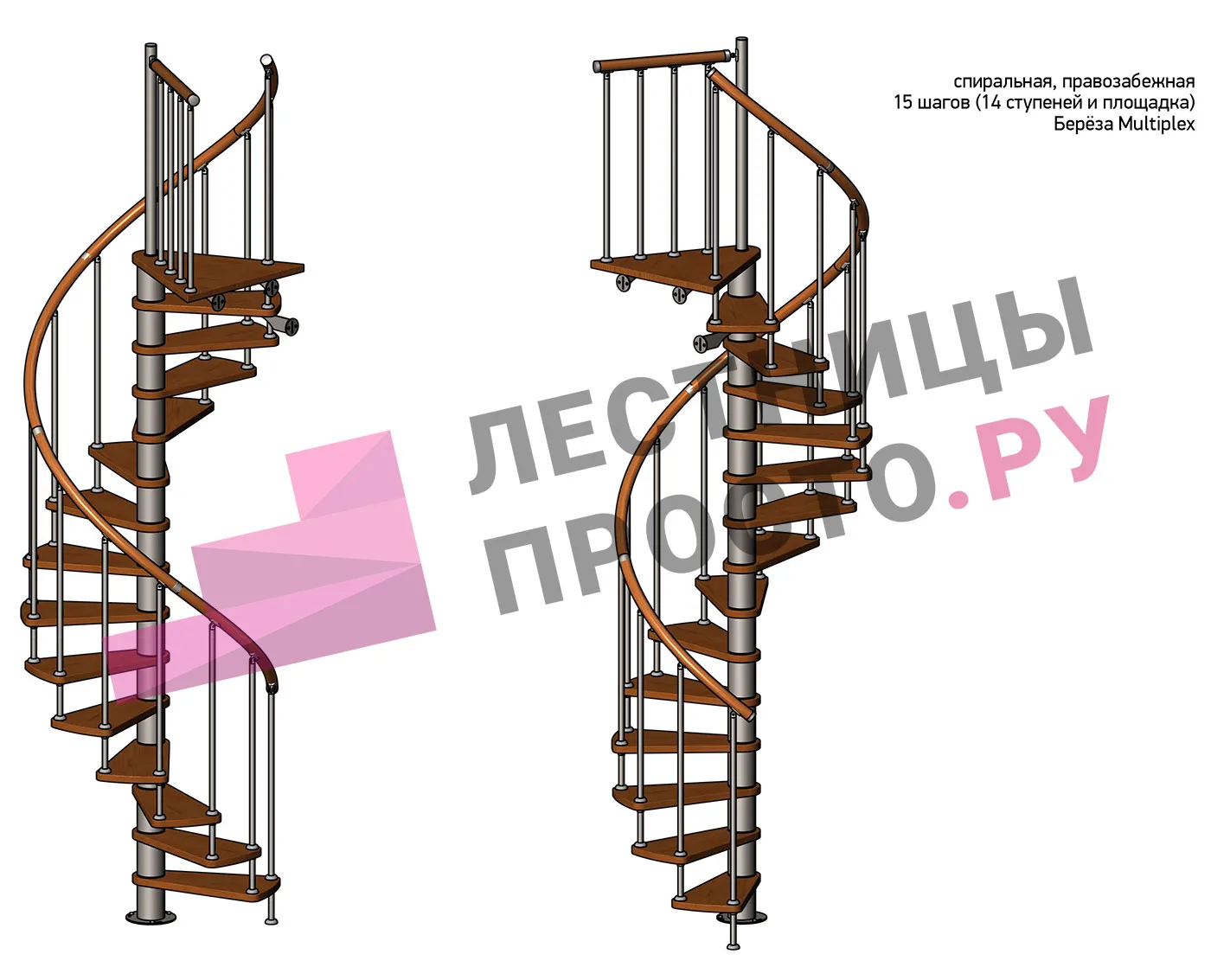 Винтовая лестница Prosto Spiral White D120см, h318.2-362.3 см