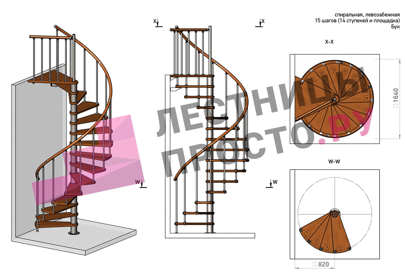 Высота лестницы 3257 - 3610 (14 ступеней) мм