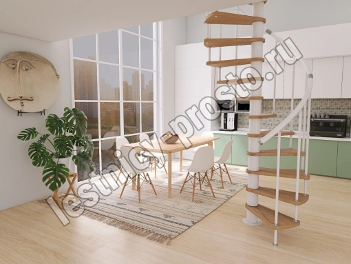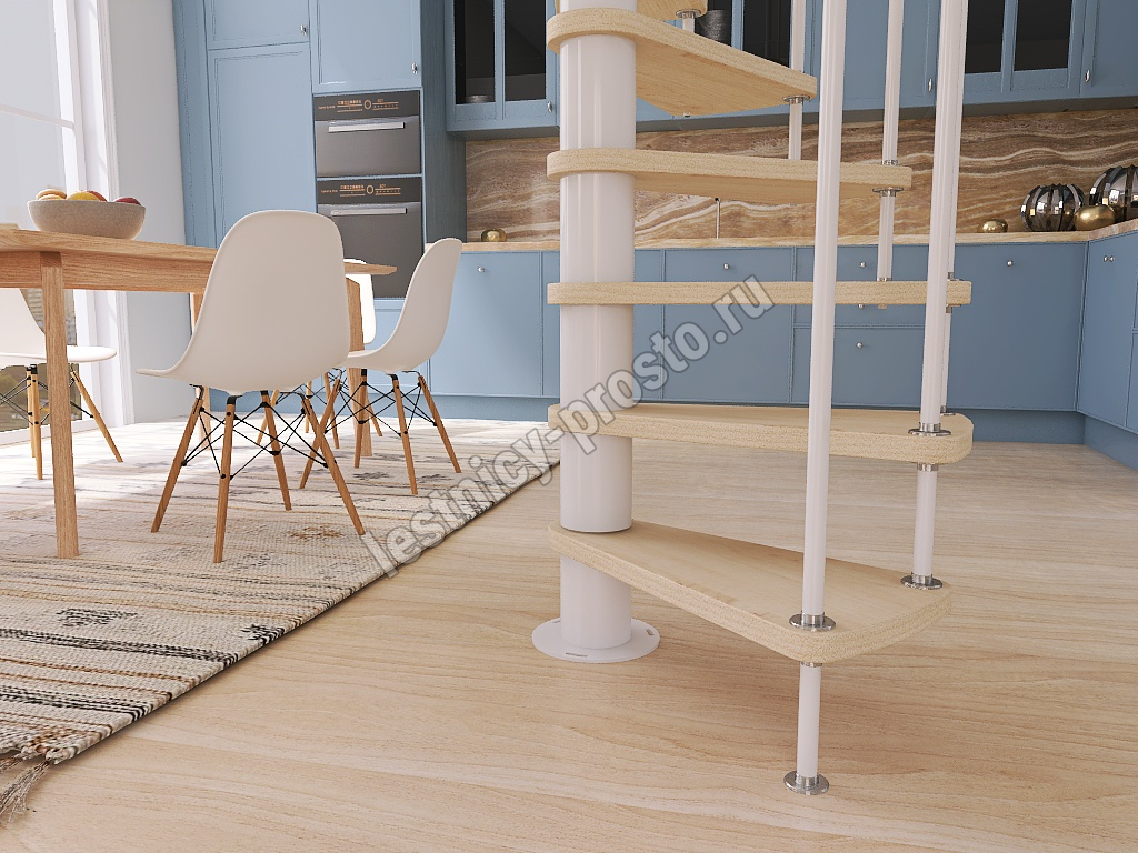 Винтовая лестница Prosto Spiral White D160см, h325.7-369.8 см, бук