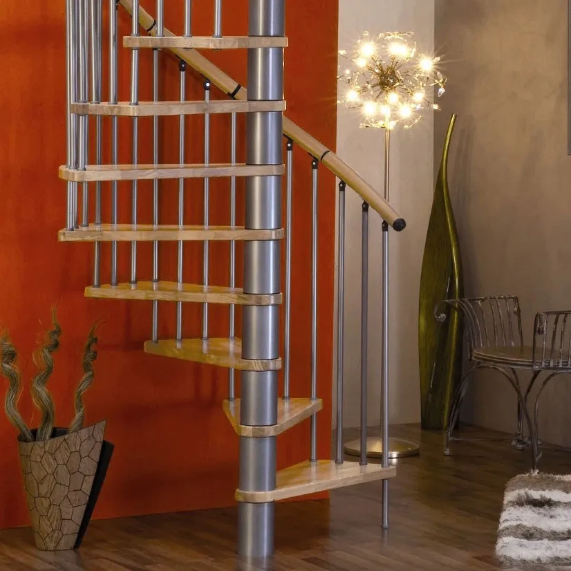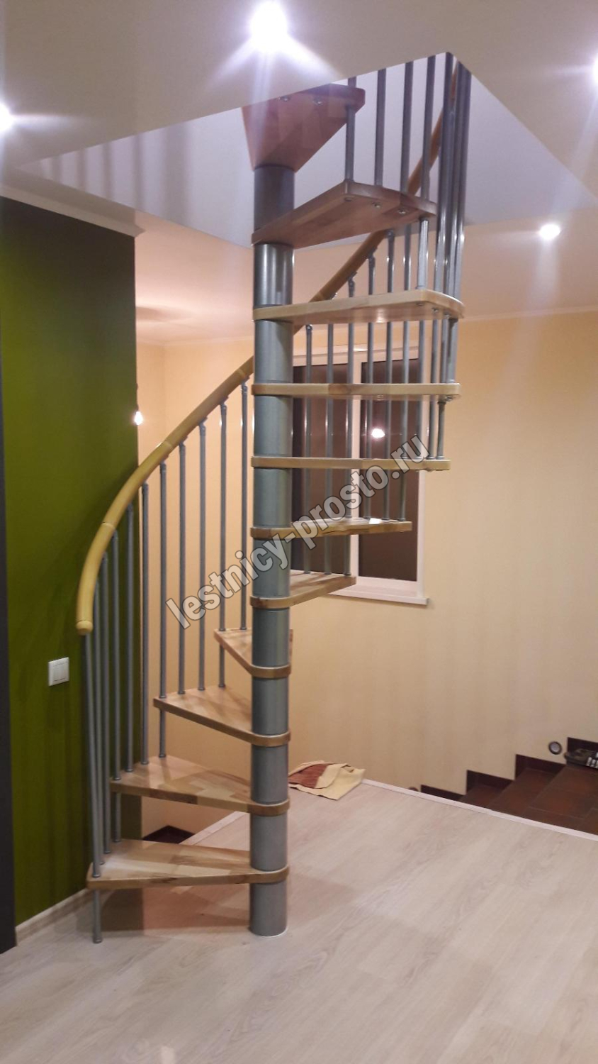 Винтовая лестница SPIRAL WOOD d160 см, серебро, лакированный бук
