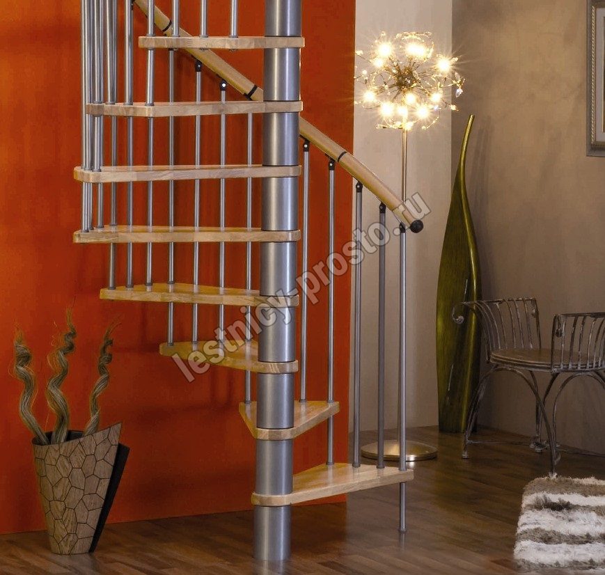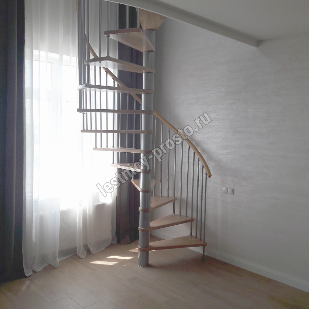 Винтовая лестница SPIRAL WOOD d120 см. серебро, лакированный дуб