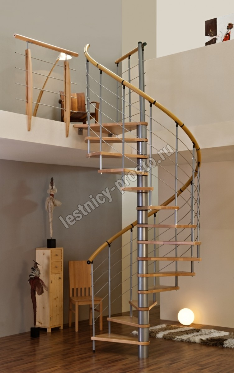 Винтовая лестница Venezia d120 см, серебро, бук лакированный