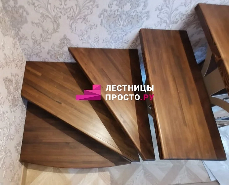 Лестница на центральном каркасе г-обр. металлик, ступени лиственница, LP-151021